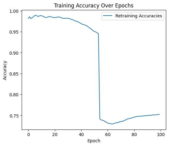 While this approach works well on paper, I found it was not enough to remove the backdoor trigger. The model remained highly susceptible to backdoor attacks using the old trigger, even when suspect neurons were silenced and the model was retrained. This leads me to the second part of my hybrid approach, Adversarial Unlearning.